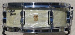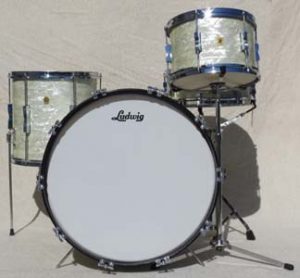 Late 1960’s Ludwig, Club Date, 8×12″, 14×14″, 14×22″, 5×14″ White Marine Pearl 3 ply shells, excellent, original. $3500.00